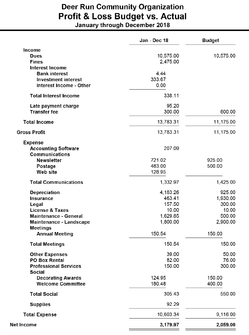 2018 Profit & Loss Statement